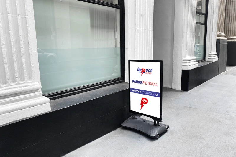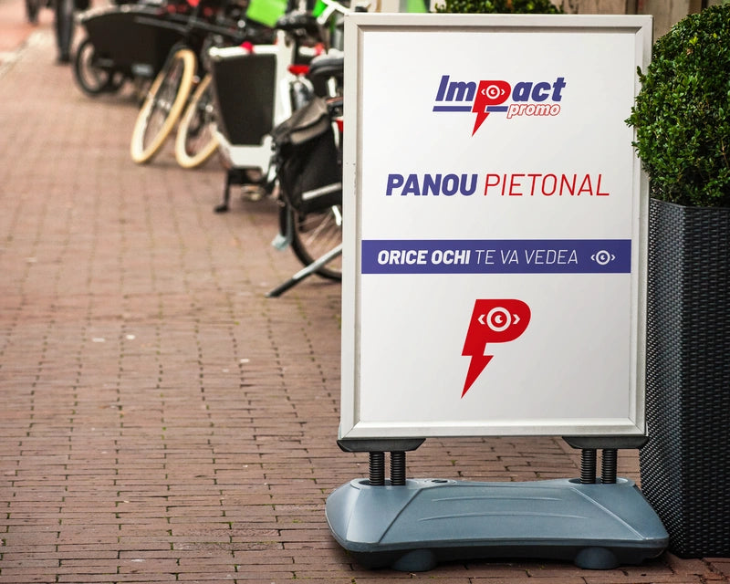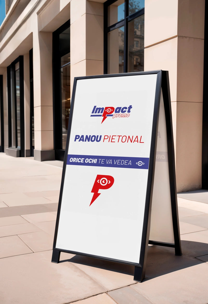 Atrage atenția, crește traficul și comunică eficient în spațiul urban! Panoul pietonal publicitar, cunoscut și ca A-board sau stradal pliabil, este o soluție versatilă și eficientă de promovare, ideală pentru companii care vor să fie văzute – la propriu – în fața punctelor de lucru, showroomurilor, restaurantelor sau în spații comerciale cu trafic pietonal intens.